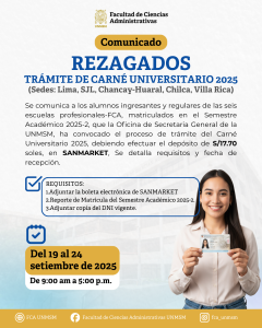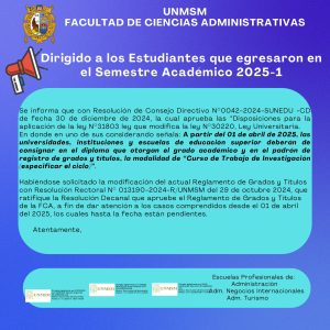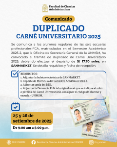 Se comunica a los alumnos regulares de las seis escuelas profesionales-FCA, matriculados en el Semestre Académico 2025-2, que la Oficina ...