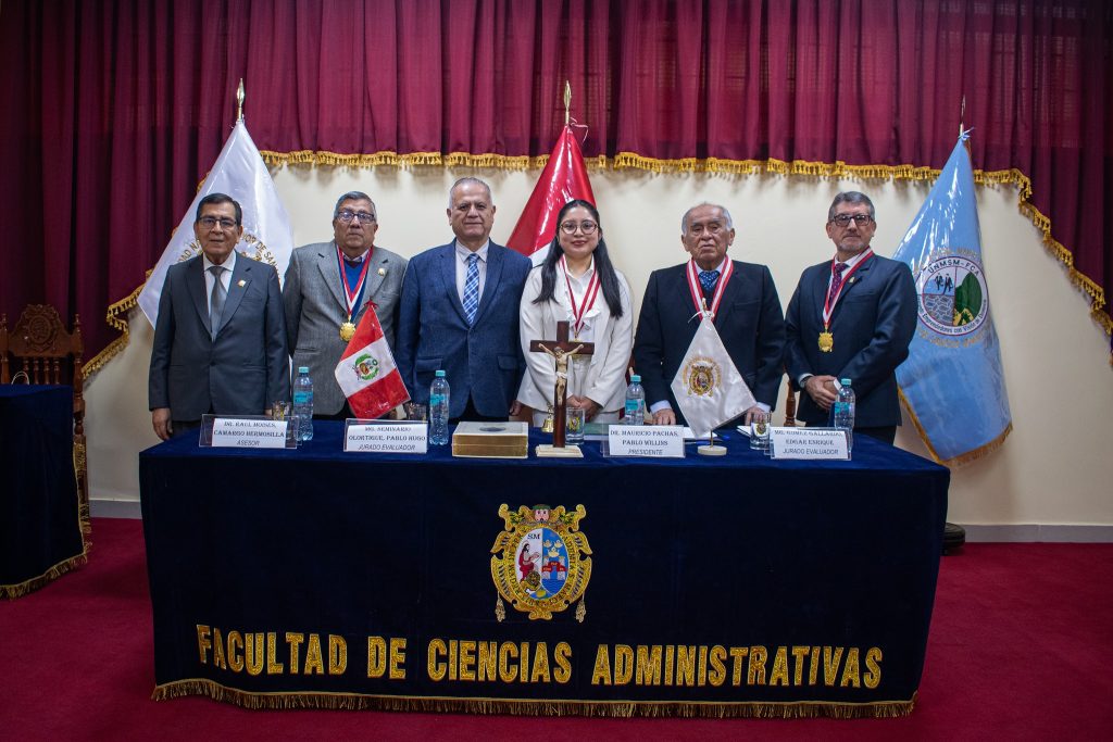La sustentación de tesis de la bachiller Timaná fue la primera en realizarse en el nuevo ambiente de la Sala de Grados de la Facultad de Ciencias Administrativas.