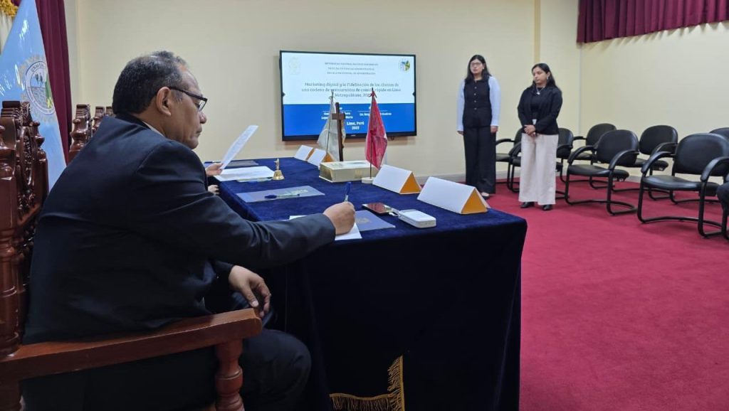 Quienes sustentaron el día 10 de noviembre del 2025 la tesis titulada «Marketing Digital y la Fidelización de los Clientes de una Cadena de Restaurantes de Comida Rápida en Lima Metropolitana, 2022”, obteniendo la calificación de APROBADAS CON MENCIÓN HONROSA.